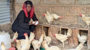 Haddy, 30, gehört zu den ersten Darlehensnehmerinnen des neuen Programms. Nach Abschluss ihrer Ausbildung im Jahr 2021 gründete sie „Haddy´s Poultry Farm“. Auf dem Hof ihrer Familie hält sie etwa 50 Legehennen. Den Großteil der Eier verkauft sie direkt vom Hof, den Rest auf dem Markt in der Kreisstadt Farafenni. Ihr Kleinunternehmen läuft stabil und profitabel, doch die Gewinne sind zu gering, um den Betrieb zu vergrößern. Dank eines Darlehens von 1.200 Euro aus unserem Förderprogramm kann sie nun einen weiteren Stall für Masthähnchen bauen.